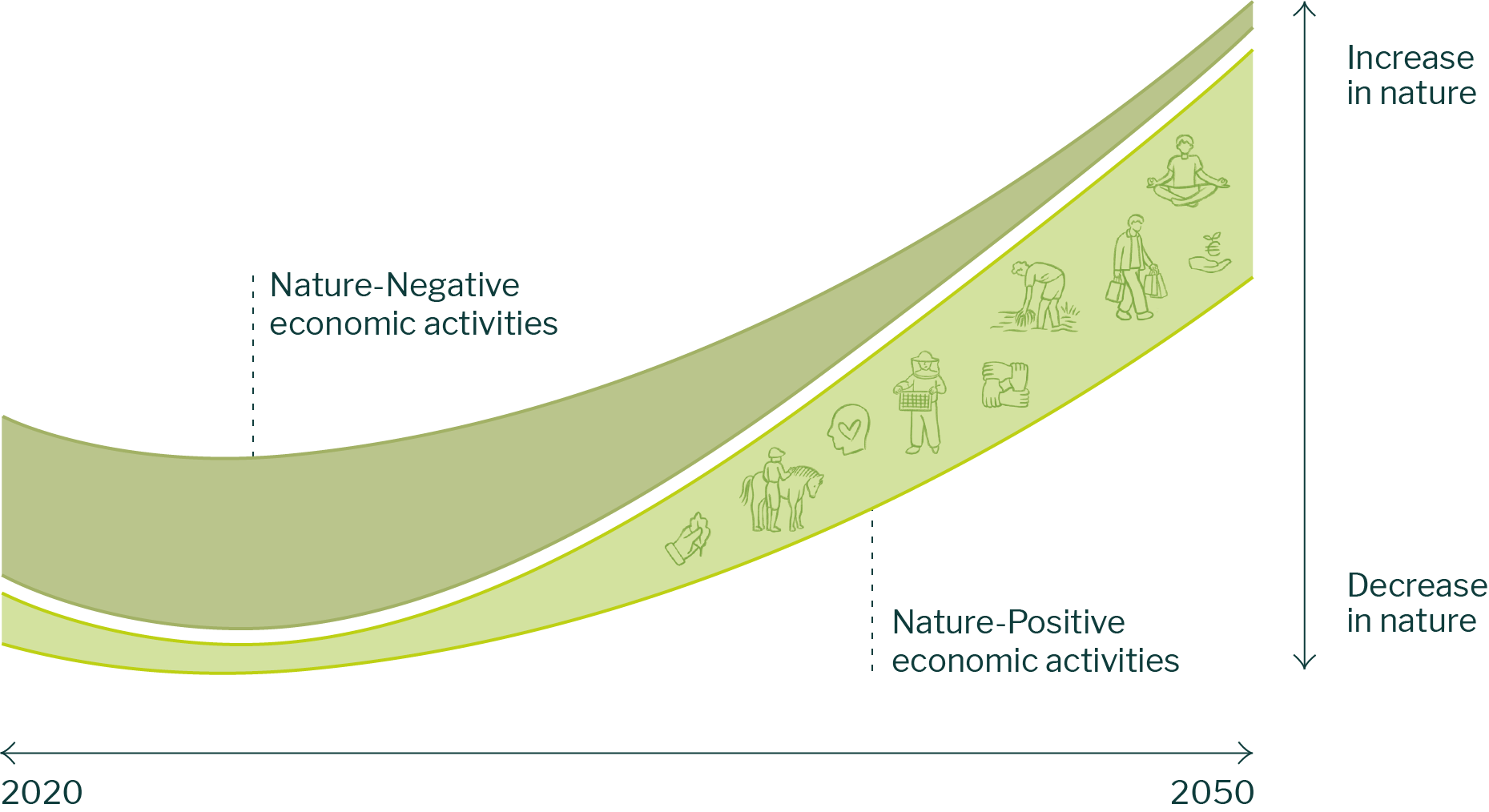 An economy is a Nature-Positive Economy (NPE) when the net result of all economic activities combined leads to an absolute increase in nature, to the point of full recovery and prosperity for all.